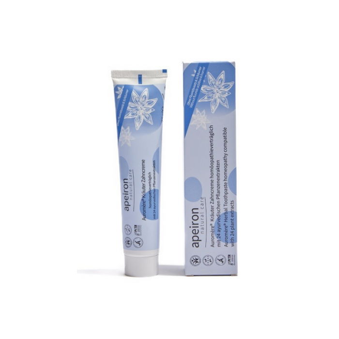 Auromère® Bylinná zubní pasta je kompozicí 24 cenných výtažků z ájurvédských bylin. Je kompatibilní s homeopatiky, a je proto vhodná k používání i v průběhu homeopatického léčení.