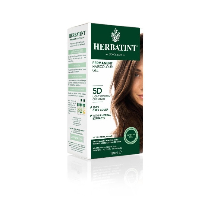 Permanentní barvy na vlasy s výtažky z osmi bylin jsou přírodnější alternativou barvení vlasů s dlouhotrvajícím efektem a 100% pokrytí šedin. Bez amoniaku, resorcinolu, parabenů, alkoholu a parfemace. Barvy jsou při aplikaci zcela bez odéru. Jako jediné z permanentních barev jsou barvy HERBATINT dermatologicky testovány na citlivou pokožku. Balení vystačí až na 2 aplikace.