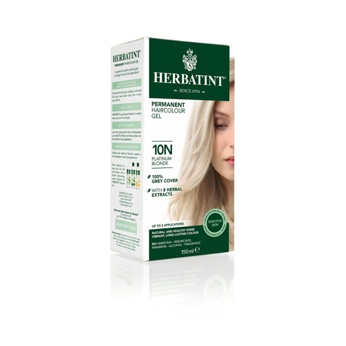 Permanentní barvy na vlasy s výtažky z osmi bylin jsou přírodnější alternativou barvení vlasů s dlouhotrvajícím efektem a 100% pokrytí šedin. Bez amoniaku, resorcinolu, parabenů, alkoholu a parfemace. Barvy jsou při aplikaci zcela bez odéru. Jako jediné z permanentních barev jsou barvy HERBATINT dermatologicky testovány na citlivou pokožku. Balení vystačí až na 2 aplikace.