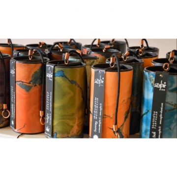 venkovní tuba: spirálově navíjené vrstvy dlouhých celulózových vláken, z vrchu designované tzv. "marble" technikou a pokryté zevnitř i zvenku ekologickým lakem